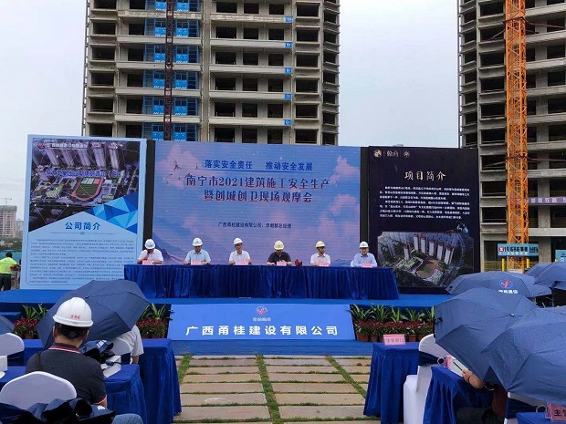 2021年6月4日,公司組織員工參加了由南寧市住建局、南寧市建管中心、南寧市建設(shè)質(zhì)安協(xié)會、廣西恒大企業(yè)集團(tuán)有限公司、廣西甬桂建設(shè)有限公司聯(lián)合承辦的南寧市建設(shè)工程2021建筑施工安全生產(chǎn)暨創(chuàng)城創(chuàng)衛(wèi)現(xiàn)場觀摩會。今年6月是全國第20個“安全生產(chǎn)月”,以“落實(shí)安全責(zé)任制,推動安全發(fā)展”為主題。啟動儀式由市建設(shè)質(zhì)安協(xié)會李壽坤會長主持,市住建局黃贊副局長、市建管中心錢強(qiáng)主任、廣西甬桂建設(shè)有限公司總經(jīng)理李朝群等出席會議,參加啟動儀式的還有各縣、城區(qū)、開發(fā)區(qū)主管部門領(lǐng)導(dǎo),駐市施工、監(jiān)理企業(yè)及項目業(yè)主主要負(fù)責(zé)人。