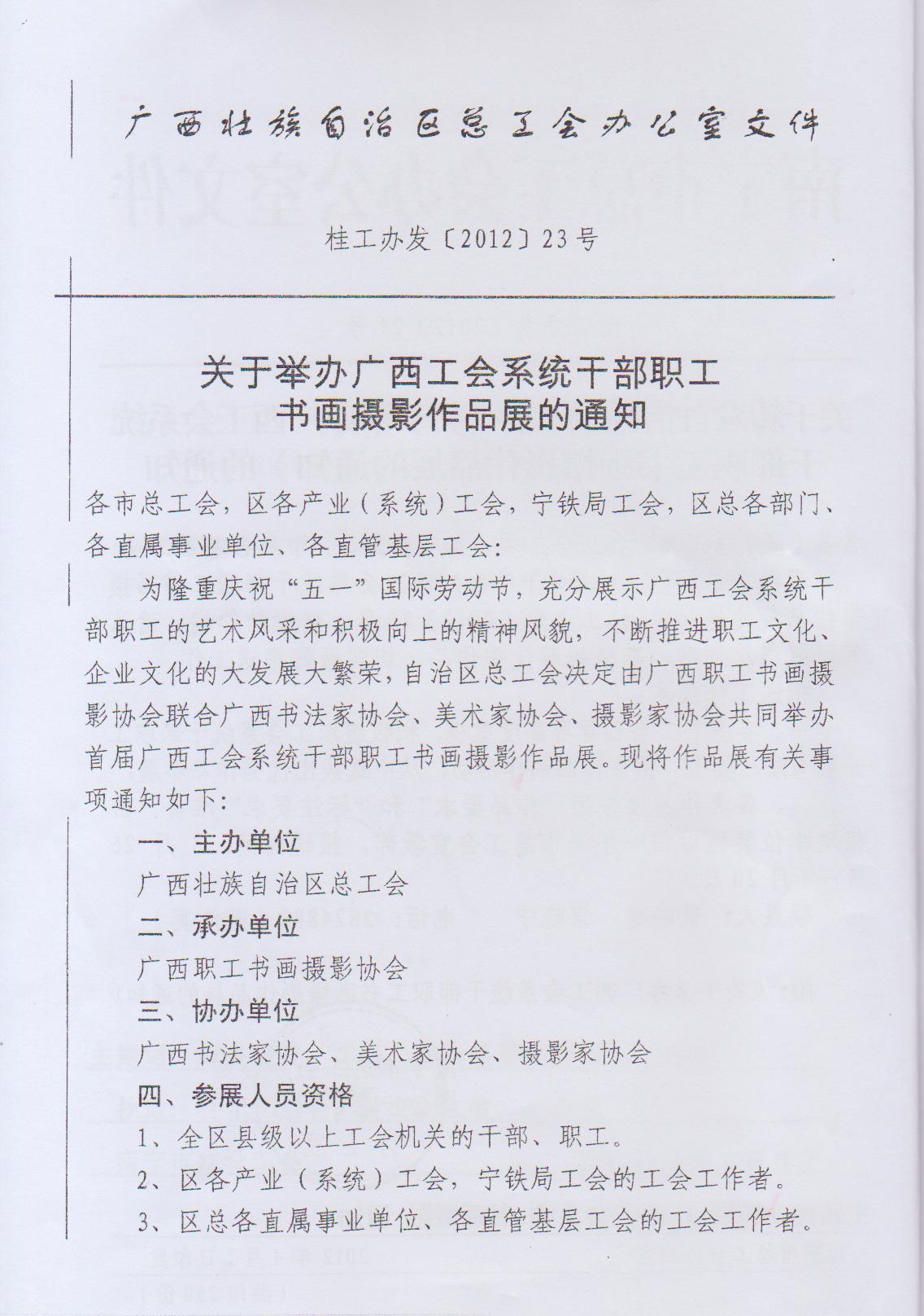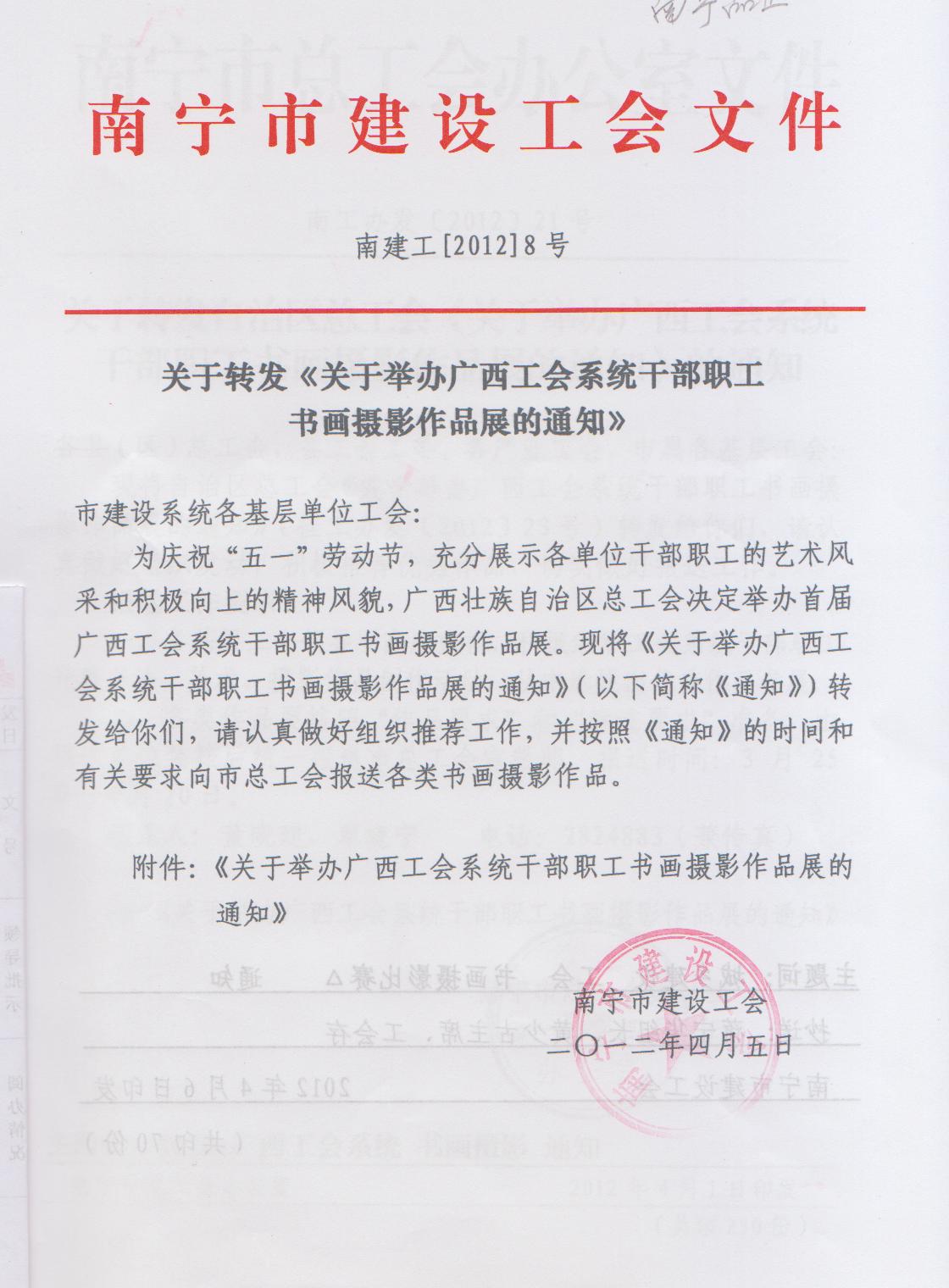關于轉發(fā)《關于舉辦廣西工會系統(tǒng)干部職工書畫攝影作品展的通知》