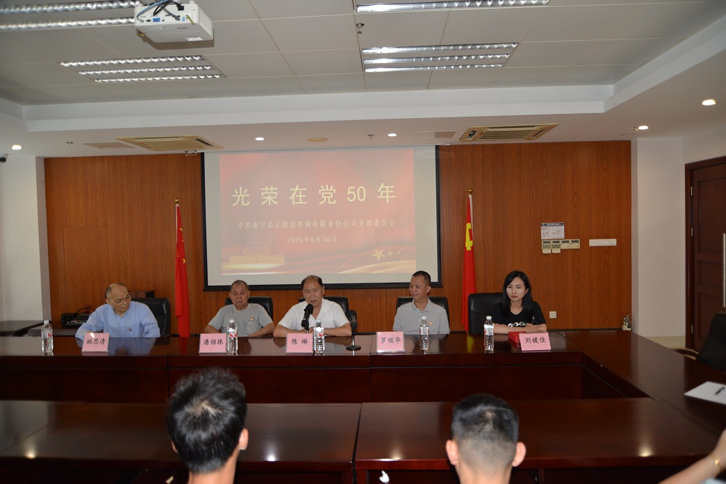 百年征程波瀾壯闊,百年初心歷久彌堅。在全國上下喜迎中國共產(chǎn)黨成立104周年之際,南寧市住建行業(yè)黨委于2025年6月30日下午到南寧品正黨支部對老黨員潘紹珠同志進行慰問,并給其頒發(fā)“光榮在黨50年”紀(jì)念章,傳達了黨中央對老黨員的關(guān)懷肯定之意,表達了對老黨員的崇高敬意之情,激勵廣大黨員以更加高昂的姿態(tài),奮力開創(chuàng)工作新局面。