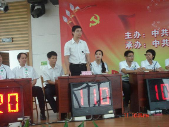 根據(jù)市城鄉(xiāng)建委有關(guān)文件精神,南寧品正黨支部高度重視,于“七一”前夕,精心組織開展豐富多彩的活動(dòng)慶祝建黨90周年,取得較好成效。一是組織員工參加市紀(jì)委慶祝建黨90周年暨“南寧清風(fēng)”反腐倡廉書畫攝影作品征稿活動(dòng),公司黨支部共報(bào)送一幅書法,8幅照片,作品以慶祝建黨90周年展黨的輝煌成就,頌清風(fēng)正氣揚(yáng)南寧發(fā)展成果為主題。二是組織10名員工參加市城鄉(xiāng)建委系統(tǒng)合唱隊(duì),隊(duì)員們遵守紀(jì)律,認(rèn)真排練。6月13日,市城鄉(xiāng)建委參加市直機(jī)關(guān)慶祝建黨90周年“綠城紅歌獻(xiàn)給黨”合唱比賽,獲三等獎(jiǎng)。三是組織選派李智、陳倩、黃綿全三名員工參加市城鄉(xiāng)建委系統(tǒng)慶祝建黨90周年黨的知識(shí)競(jìng)賽,獲預(yù)賽第一名,決賽優(yōu)勝獎(jiǎng)和優(yōu)秀組織獎(jiǎng)。四是,南寧品正黨支部與市建設(shè)建筑管理監(jiān)察支隊(duì)黨支部于7月1日在金滿園休閑觀光果園開展紀(jì)念建黨90周年暨“結(jié)對(duì)共建,先鋒同行”主題黨日活動(dòng)。雙方單位黨員、入黨積極分子、群眾代表等約70人參加活動(dòng)?;顒?dòng)內(nèi)容有重溫入黨誓詞、唱紅歌、黨史和廉政知識(shí)搶答、文體活動(dòng)等。