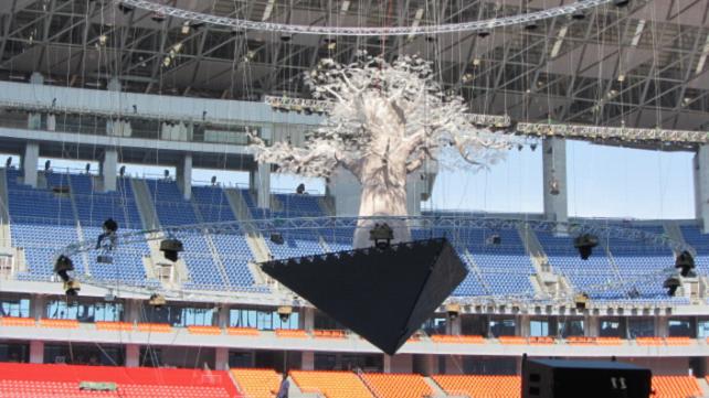 2012南寧國際民歌藝術(shù)節(jié)開幕晚會舞臺重要元素之一——高科技的懸掛道具空中鋼樹