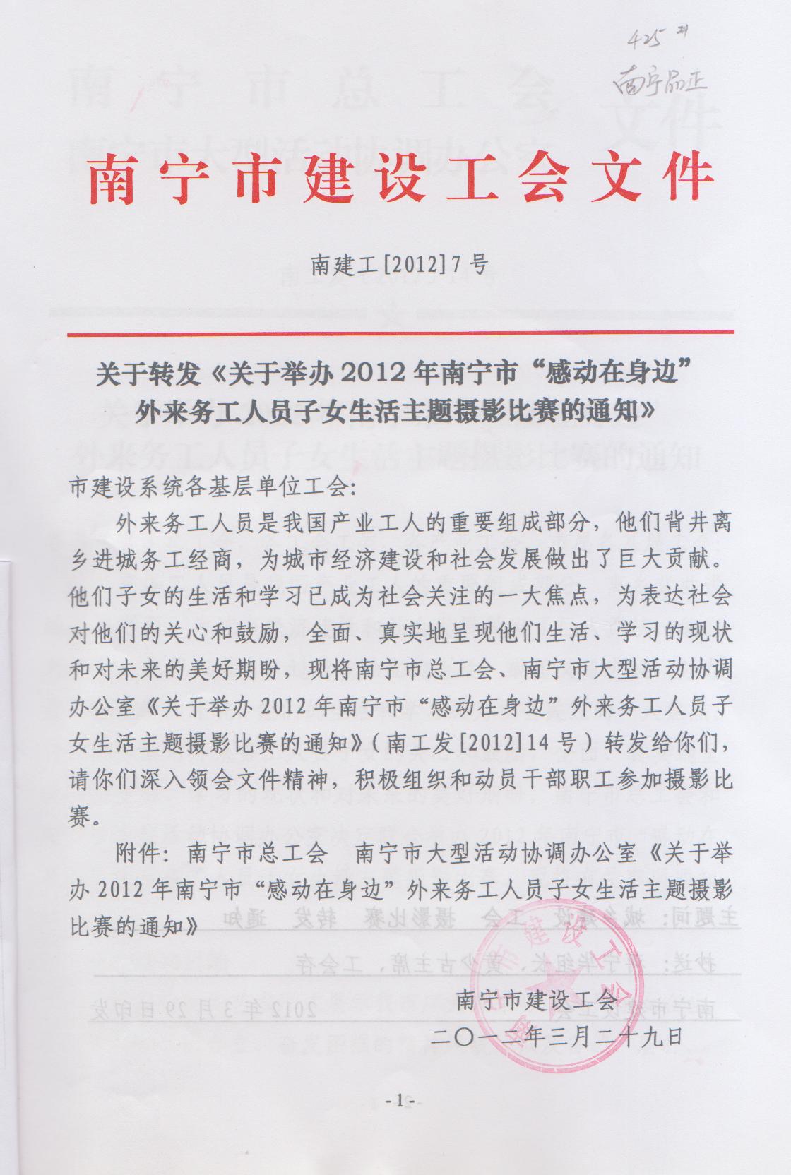 關于轉發(fā)《關于舉辦2012年南寧市“感動在身邊”外來務工人員子女生活主題攝影比賽的通知》