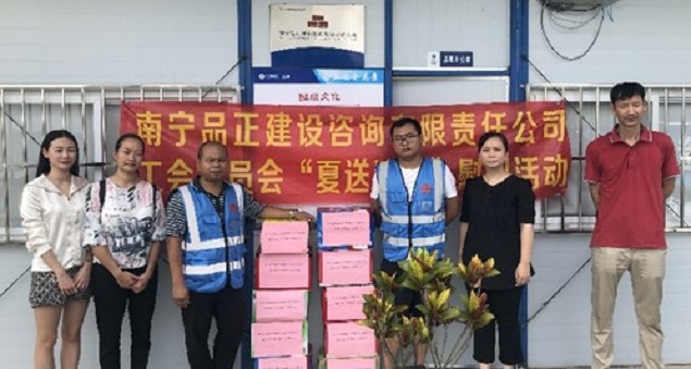 炎炎夏日,高溫持續(xù),大家都陷入了“蒸桑拿”的模式,環(huán)衛(wèi)工人、農(nóng)民工的艱辛受到了社會大眾的關(guān)注。有這么一群人,他們同樣不畏高溫,不怕酷暑,在“桑拿”的天氣下,依舊堅守在崗位上,他們就是堅守一線監(jiān)理崗位的員工。近日,由南寧品正建設(shè)咨詢有限責(zé)任公司工會委員會組織,公司總經(jīng)理羅順華、副總經(jīng)理蘇艷、工會主席梁秋霞以及工會委員組成的慰問小組深入基層項目,慰問頂著烈日、堅守崗位的一線監(jiān)理員工,給他們送去絲絲涼意和滴滴關(guān)愛,讓他們在炎炎夏日中感受到公司工會“娘家人”對他們的關(guān)心。