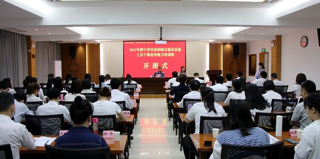 為強化理論武裝,把牢正確政治方向,提高工會干部的整體素質(zhì)水平,2021年3月29日—4月2日,南寧市住房和城鄉(xiāng)建設系統(tǒng)工會干部業(yè)務能力培訓班在廣西干部學院隆重開班,來自建設行業(yè)的20多家企業(yè)的工會主席和工會干部共60人參加了本次為期五天的培訓。南寧市建設工會顧問黃少古同志在開班儀式上作重要講話。