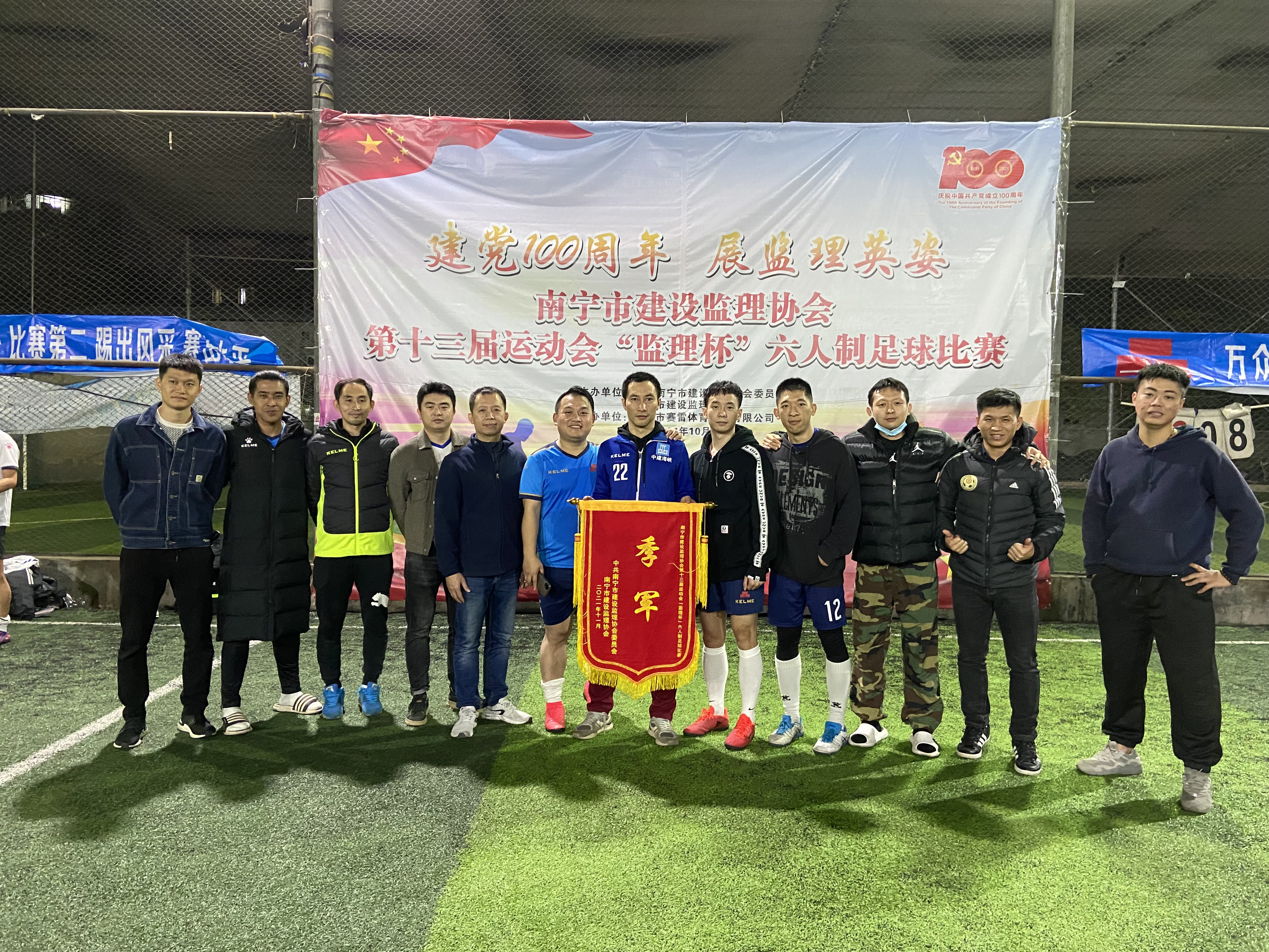 為慶祝中國共產(chǎn)黨建黨100周年,中共南寧市建設(shè)監(jiān)理協(xié)會委員會和南寧市建設(shè)監(jiān)理協(xié)會共同舉辦了南寧市建設(shè)監(jiān)理協(xié)會第十三屆運(yùn)動會“監(jiān)理杯”六人制足球比賽,經(jīng)過兩個多月緊張、激烈的比賽,于2021年12月23日23:00完美落幕,南寧品正足球隊(duì)在此次比賽中榮獲季軍。