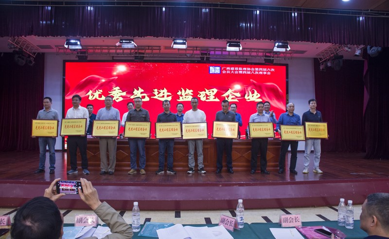 在會(huì)議的表彰儀式上,南寧品正總經(jīng)理羅順華代表公司上臺(tái)領(lǐng)取了廣西建設(shè)監(jiān)理協(xié)會(huì)頒發(fā)的“2021年度先進(jìn)工程監(jiān)理企業(yè)”牌匾。南寧品正總監(jiān)理工程師曾振華、莫志良、劉建琨、高麗鮮、張騰等5人榮獲2021年度“廣西優(yōu)秀總監(jiān)理工程師”稱號(hào)。