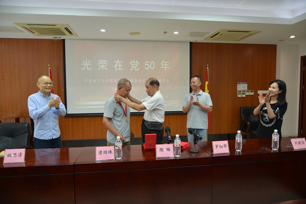 最后,南寧市住建行業(yè)黨委陳琳副書記發(fā)言致詞,他指出:“光榮在黨50年”紀(jì)念章是黨員用半生奉獻換來的榮譽,這份榮譽是廣大黨員在學(xué)習(xí)黨史過程中的鮮活范例,榮譽之光更是照亮我們黨前行之路的一盞“明燈”。他希望潘紹珠保重身體,繼續(xù)發(fā)揮余熱,永葆政治本色;期望廣大年輕黨員以老黨員為榜樣,永遠聽黨話、感恩黨,跟黨走,賡續(xù)光榮傳統(tǒng),傳承精神譜系,砥礪奮進、接棒前行,奮力在全面建設(shè)社會主義現(xiàn)代化國家新征程上譜寫新篇章!