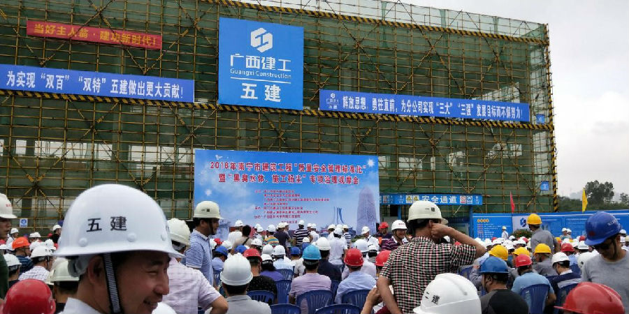 2018年5月11日,公司技術(shù)管理部門(mén)有關(guān)負(fù)責(zé)人和南寧市內(nèi)各項(xiàng)目總監(jiān),參加了由南寧市城鄉(xiāng)建設(shè)委員會(huì)、南寧市安全生產(chǎn)管理監(jiān)督局等單位主辦的2018年南寧市建筑工程“質(zhì)量安全管理標(biāo)準(zhǔn)化”暨“黑臭水體、施工揚(yáng)塵”專(zhuān)項(xiàng)治理觀摩會(huì)。觀摩項(xiàng)目是廣西建工五建總承包施工的“廣西醫(yī)科大學(xué)東盟國(guó)際口腔醫(yī)學(xué)院項(xiàng)目北地塊主體工程”項(xiàng)目。觀摩會(huì)引千人觀摩,持續(xù)2小時(shí)。觀摩主要內(nèi)容如下: